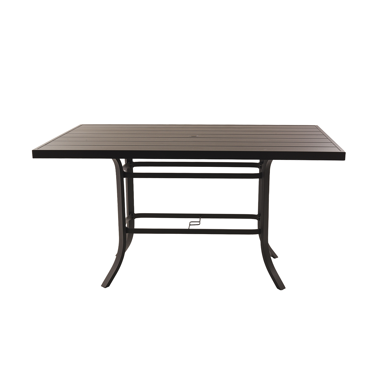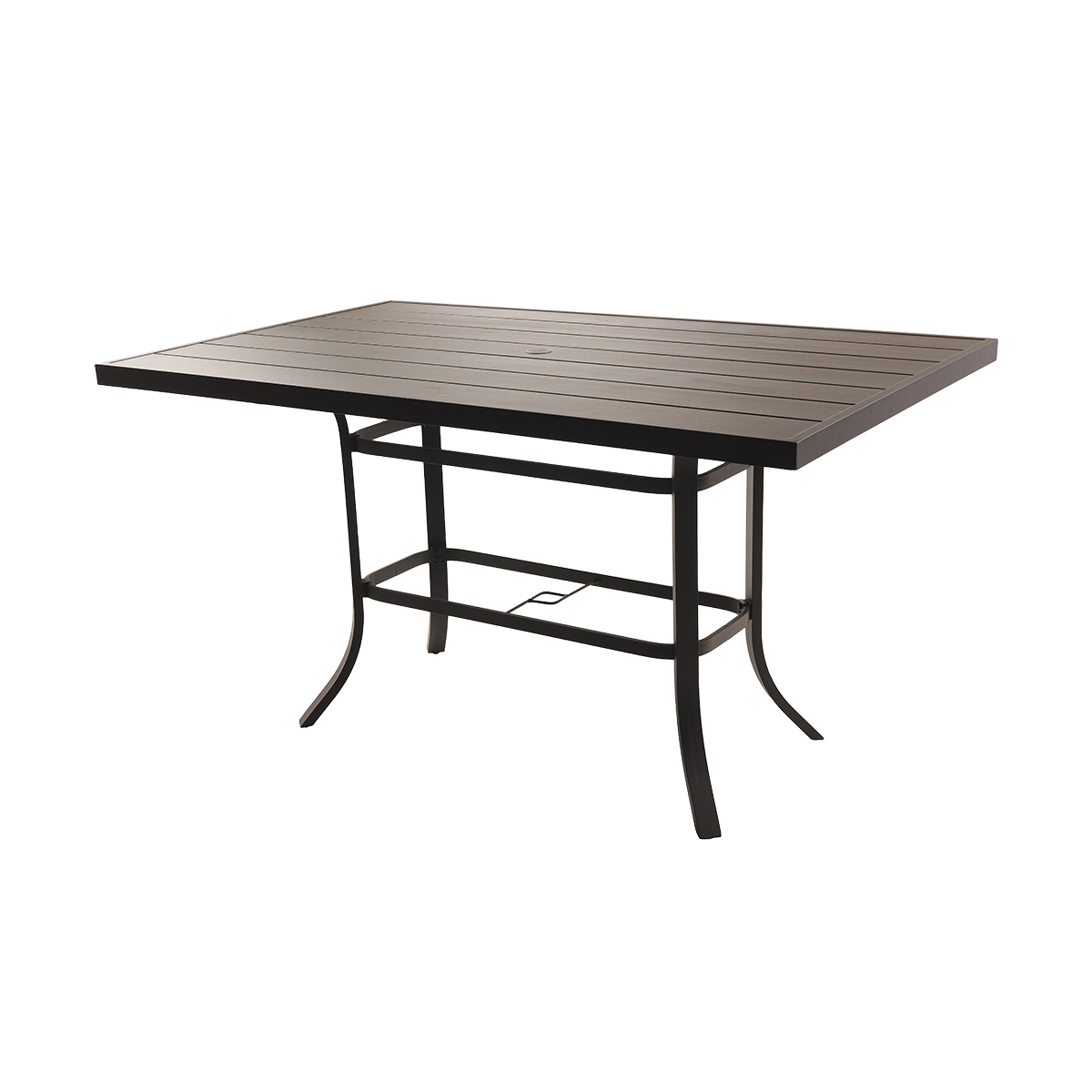 The Miramar 40” x 70” Balcony Table brings style and functionality to elevated outdoor areas. Its rust-proof aluminum frame ensures durability, while its spacious surface and umbrella hole make it perfect for balcony entertaining.