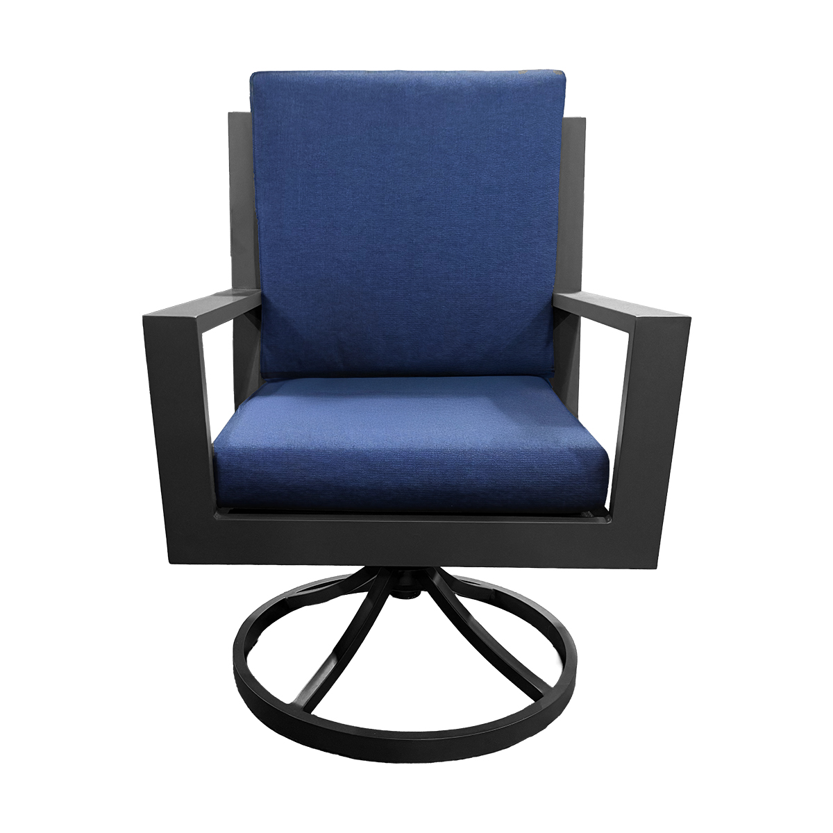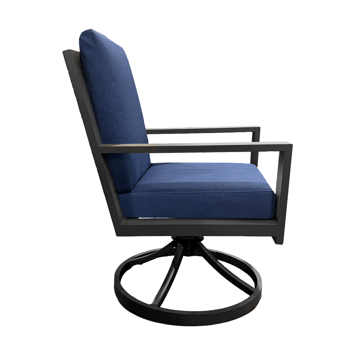 Add dynamic functionality to your dining setup with the Miramar Dining Swivel Chair. The rust-proof aluminum frame features a contemporary dark grey finish that complements any outdoor space. The swivel base allows for easy movement, while the slat back design provides comfort and a modern aesthetic.