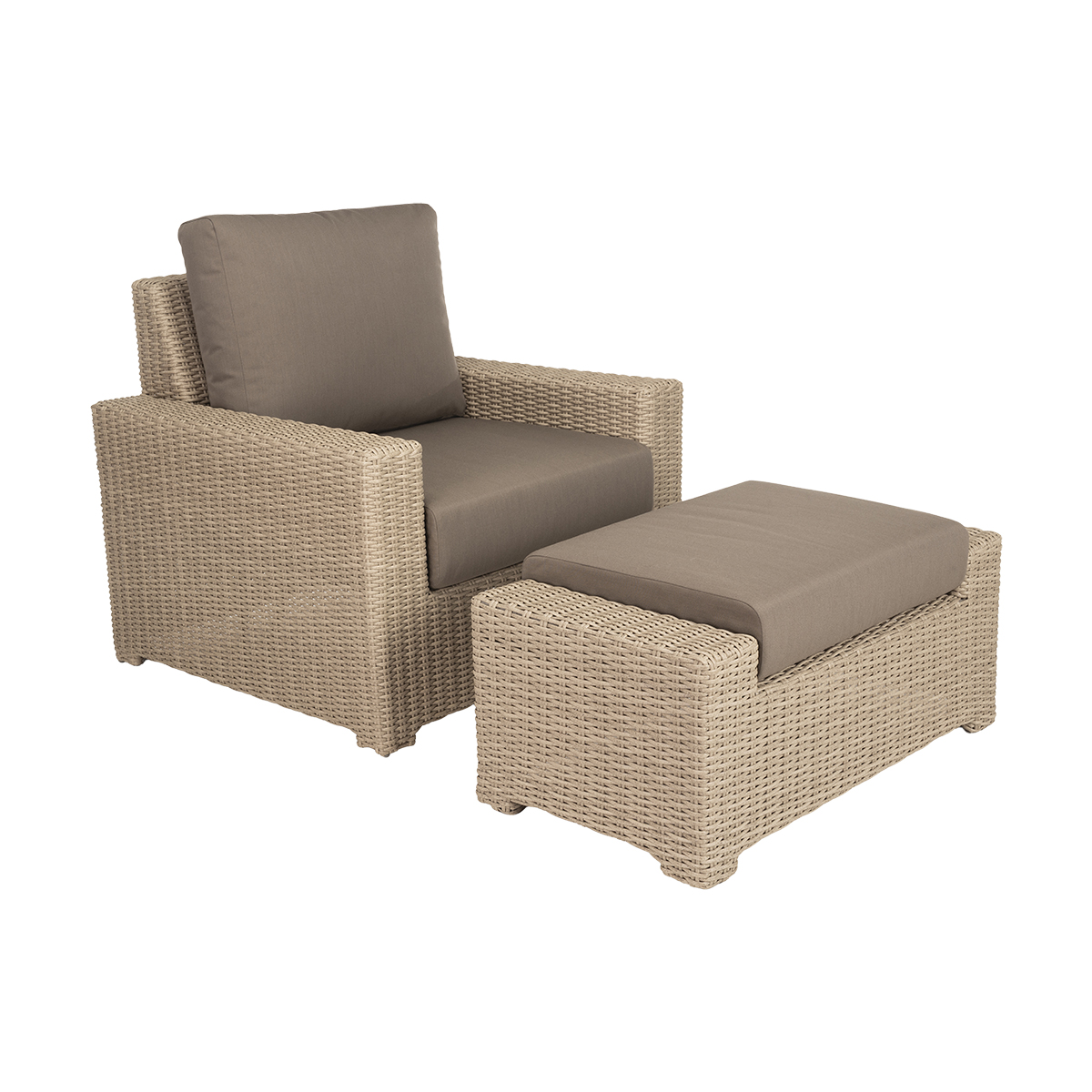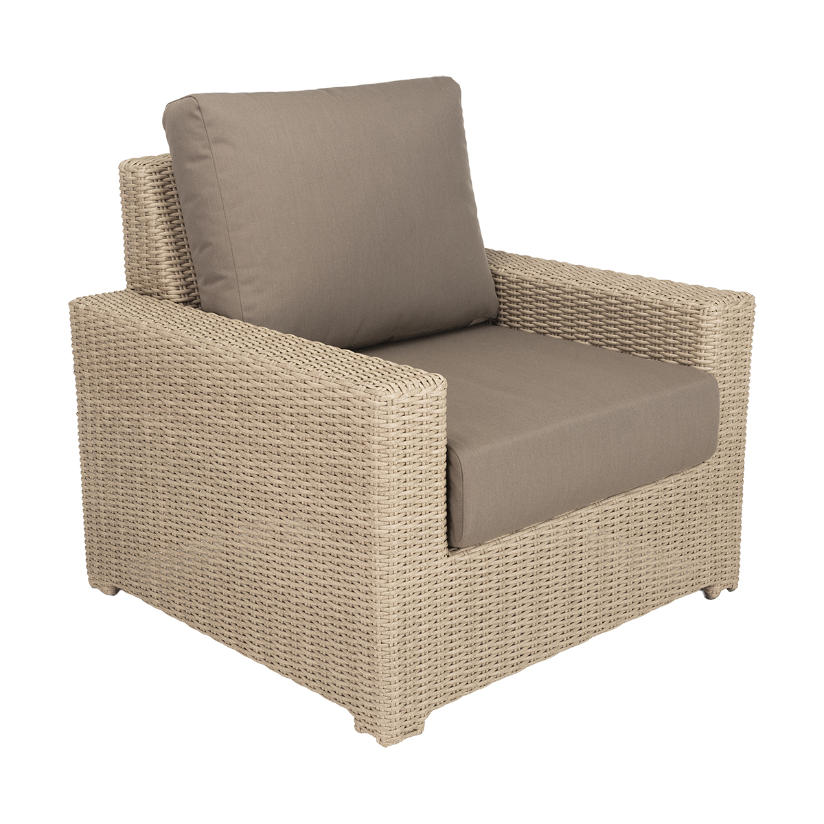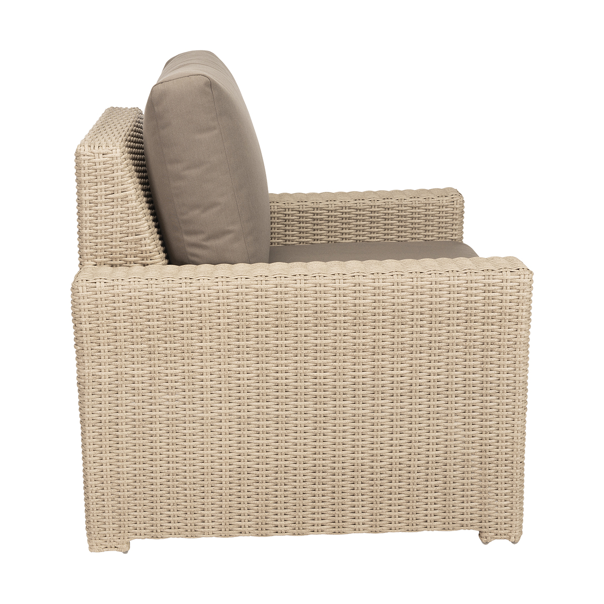 The Sanibel Lounge Chair combines transitional design with exceptional comfort. Its straight armrests and slightly elevated mid-back provide support and elegance, while the modern round weave creates a clean and inviting look. Paired with UV-protected weather-proof cushions, this chair is perfect for relaxing outdoors in style.