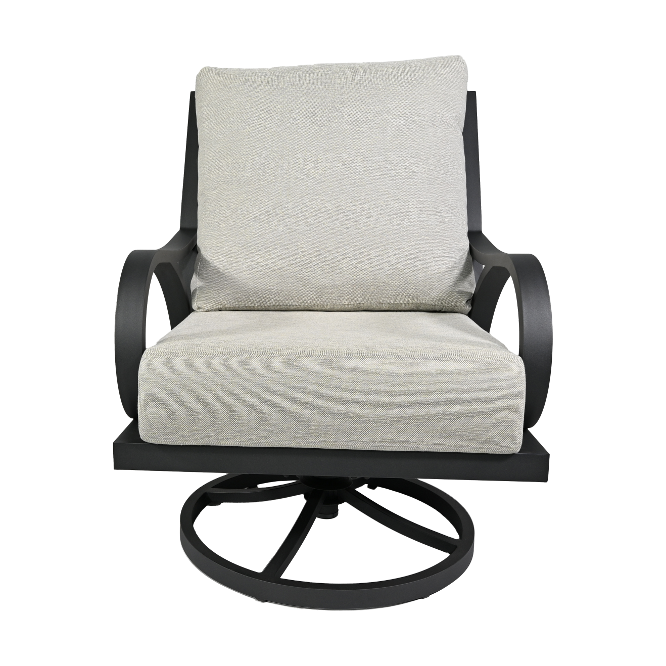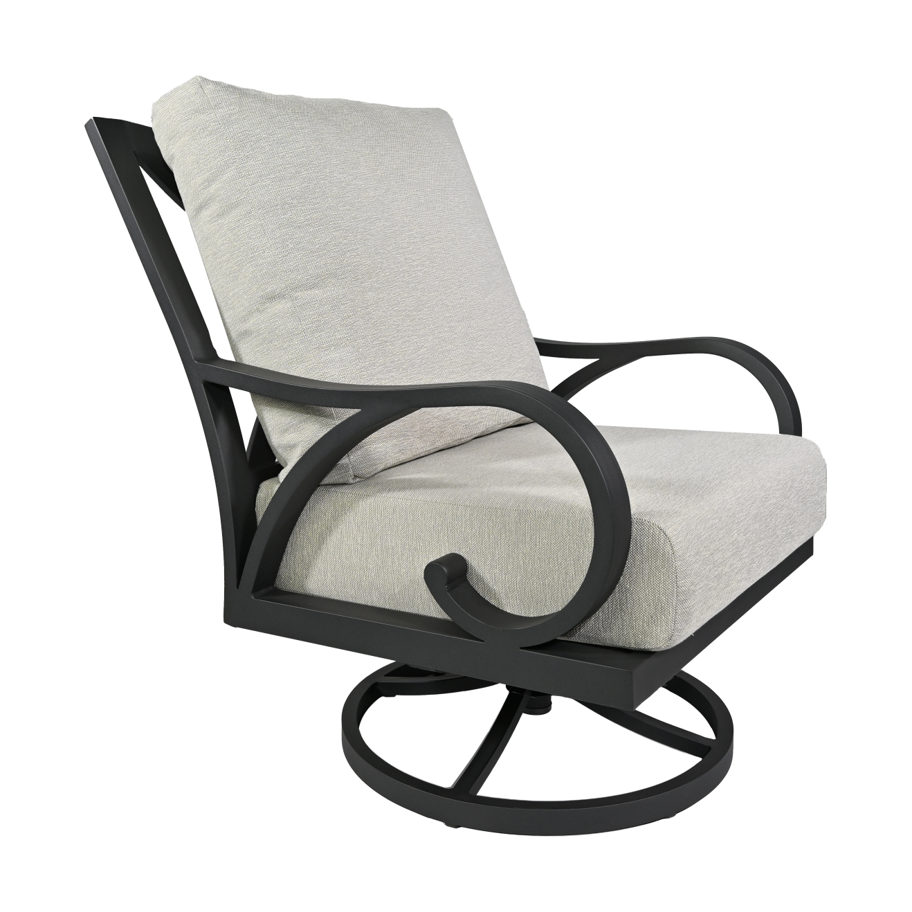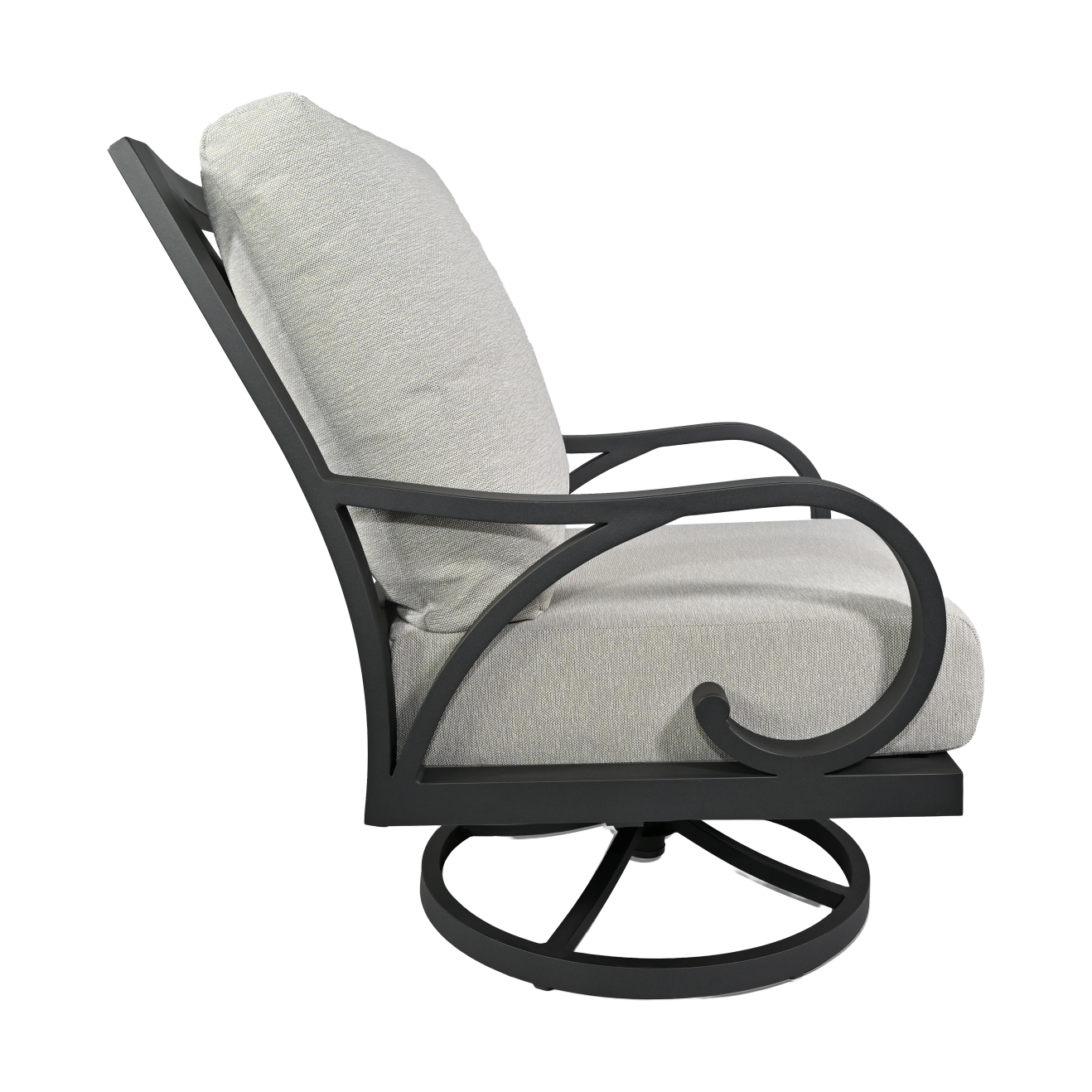 Experience dynamic comfort with the Cape Coral Swivel Lounge Chair. Its hi-back design, rolled arms, and smooth swivel functionality make it a versatile addition to any patio. The durable Tiger Charcoal frame ensures a sleek, modern aesthetic.