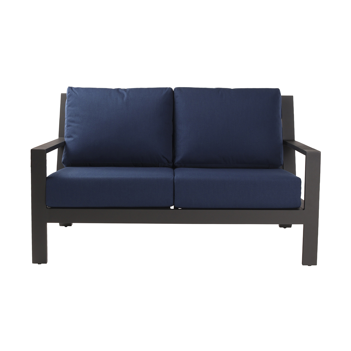 The Miramar Loveseat offers cozy seating for two with a blend of modern design and durability. The rust-proof aluminum frame in a deep finish ensures resistance to weathering, while the UV-protected cushions provide luxurious comfort.